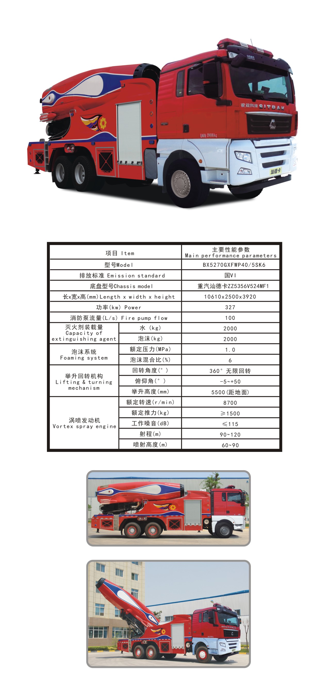 BX5270GXFWP40/5SK6新型舉高渦噴5消防車