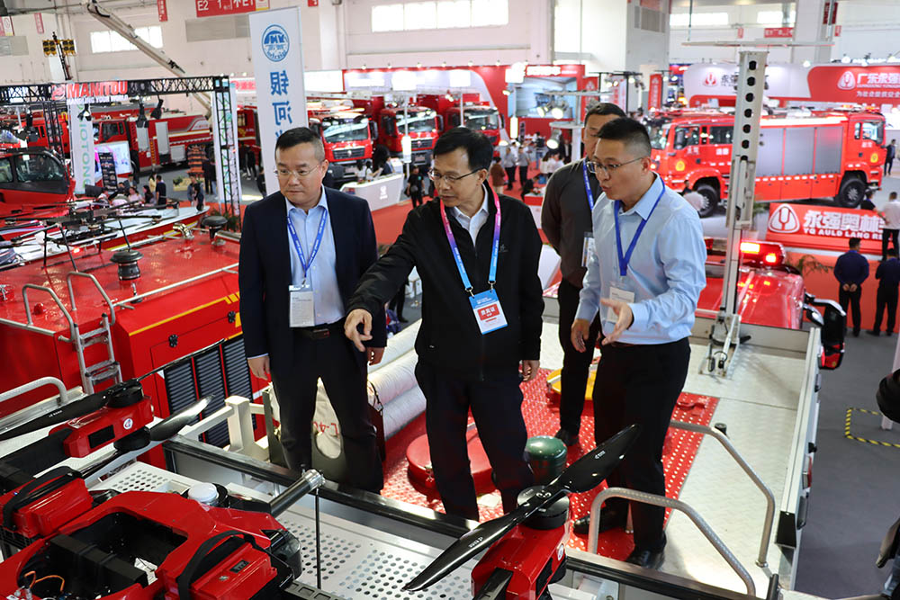 本屆展會(huì)上,陜西銀河消防科技裝備股份有限公司堅(jiān)實(shí)鍛造“全災(zāi)種、大應(yīng)急”綜合救援能力,專注產(chǎn)品研發(fā),不斷創(chuàng)新產(chǎn)品工藝,共推出應(yīng)急排風(fēng)掩護(hù)機(jī)器人、無人機(jī)壓縮空氣消防車、機(jī)場(chǎng)高壓噴霧消防車和搶險(xiǎn)救援消防車4款車型,在消防細(xì)分市場(chǎng)領(lǐng)域進(jìn)一步深耕。一個(gè)個(gè)先進(jìn)裝備吸引著觀眾目光,讓大家放緩腳步,駐足了解。中國(guó)消防救援學(xué)院院長(zhǎng)閆勝利對(duì)銀河消防公司產(chǎn)品給予高度贊賞和評(píng)價(jià),并邀請(qǐng)銀河消防公司于10月14日前往中國(guó)消防救援學(xué)院進(jìn)行無人機(jī)壓縮空氣消防車實(shí)戰(zhàn)演練。
